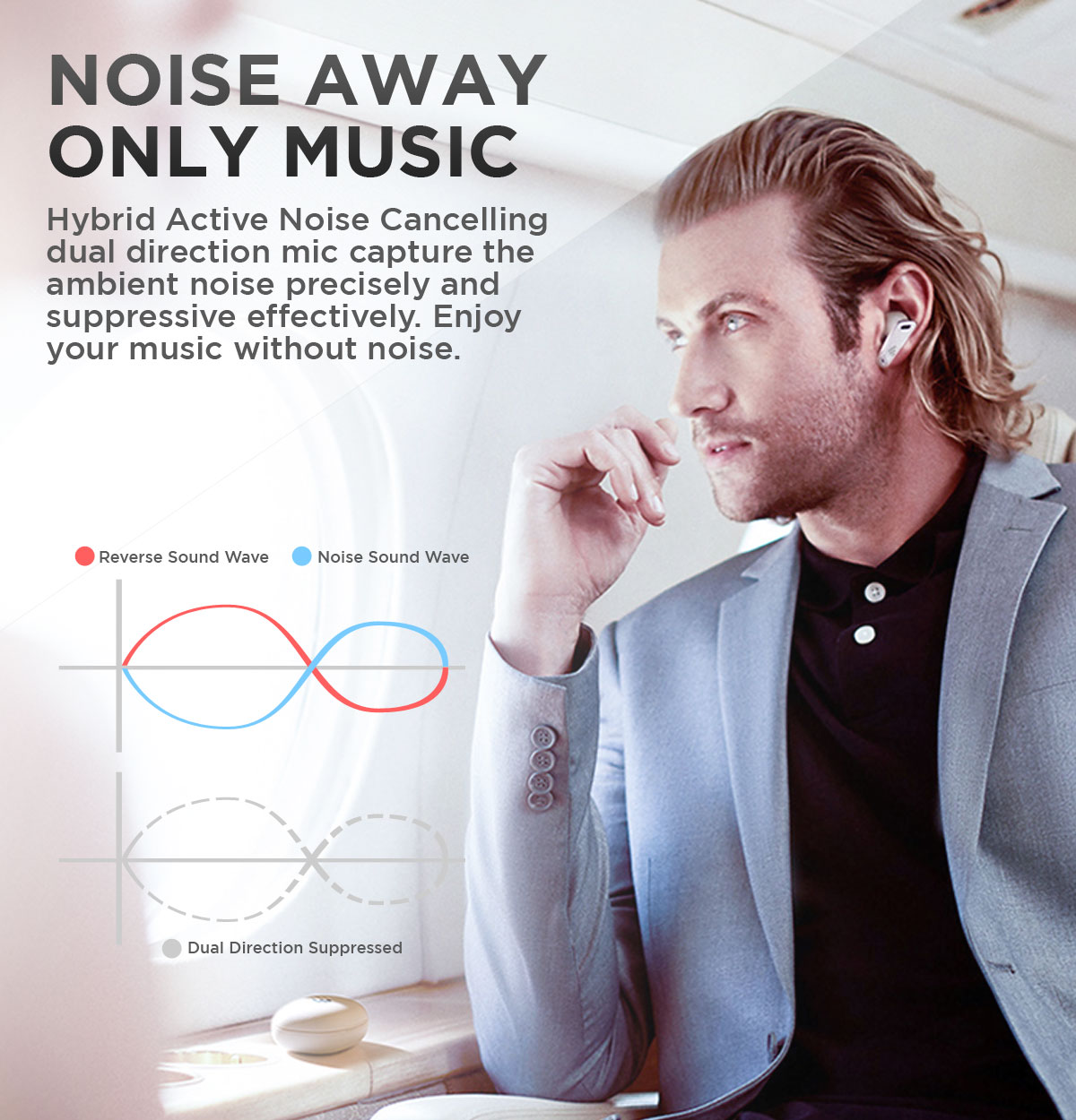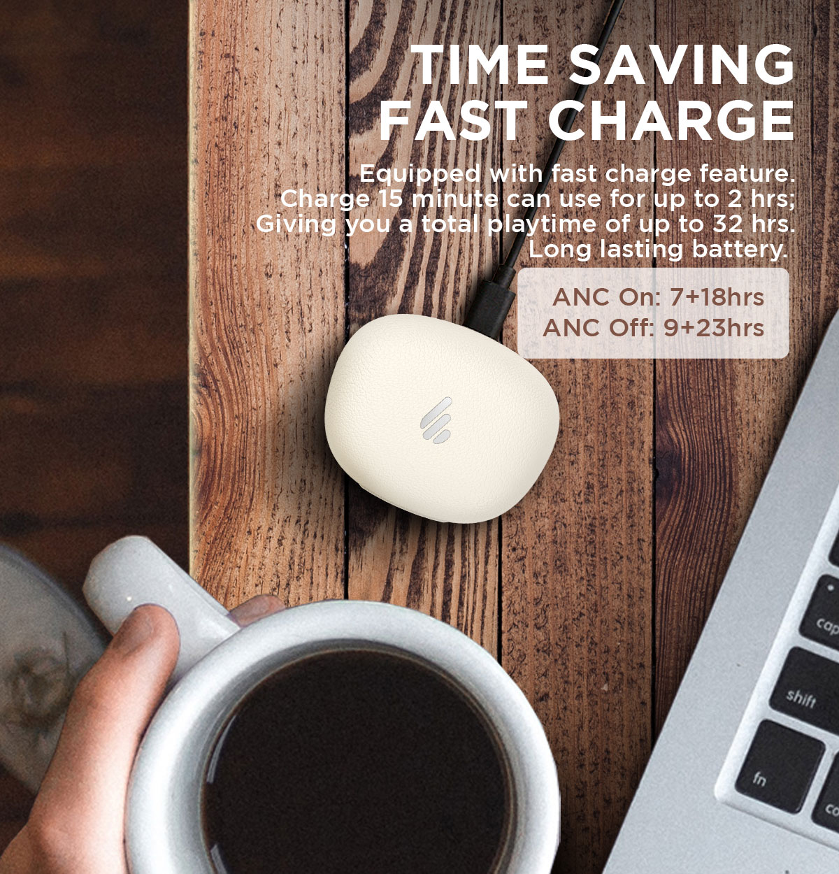 Playback Time ANC On: About 7Hrs(Earbuds) + 18 Hrs(Charging Case) ANC Off: About 9Hrs(Earbuds) + 23 Hrs(Charging Case)